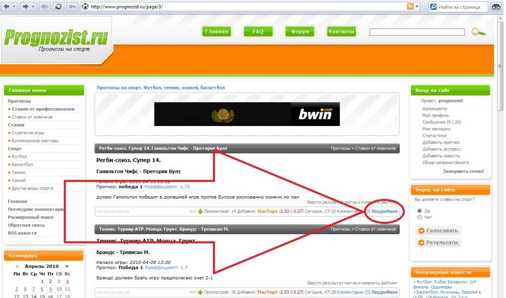 Для того чтобы закрепить прогноз необходимо зайти в полный прогноз, перейдя по ссылке Подробнее.